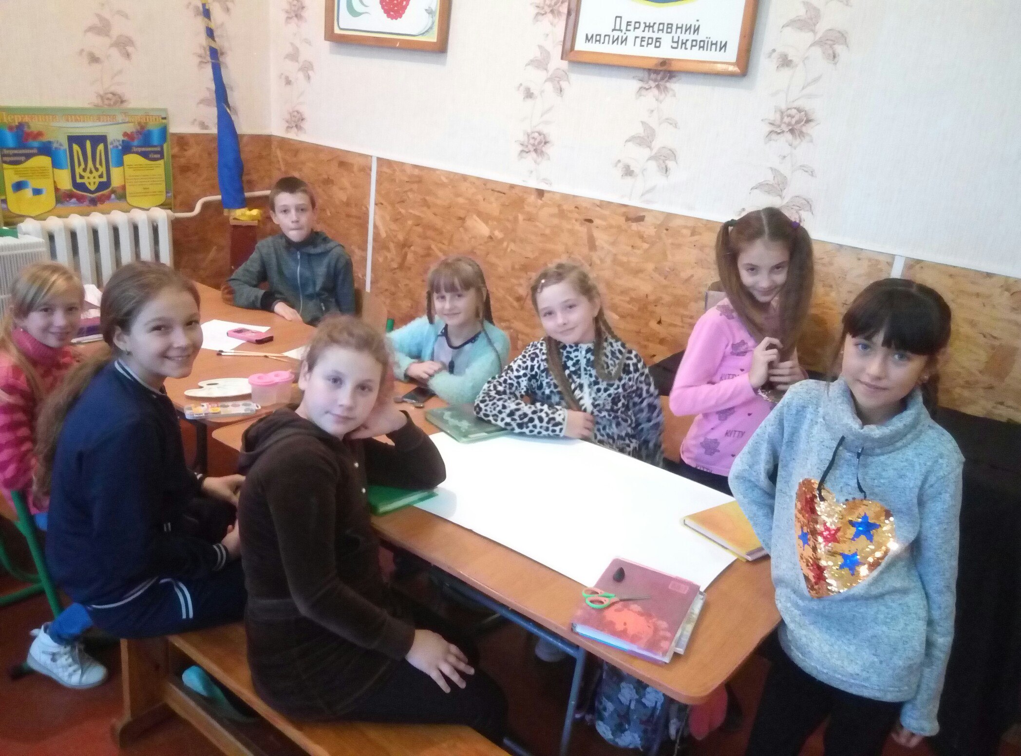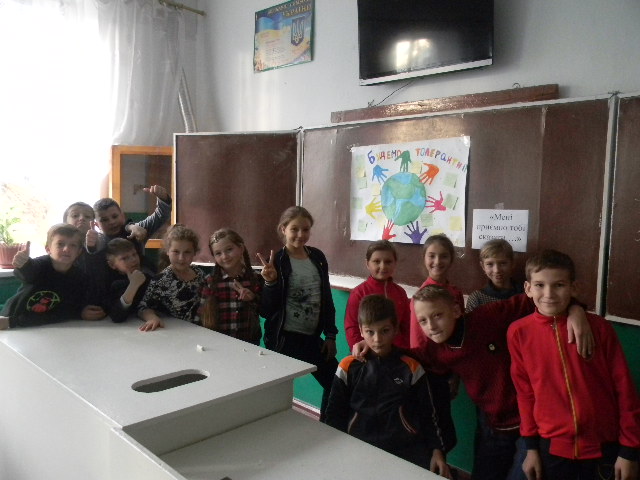 Голова учнівського самоврядування провела з учнями 5-х класів акцію «Дружні долоньки єдності». Учні писали компліменти один одному на кожному пальчику і обмінювалися долоньками.