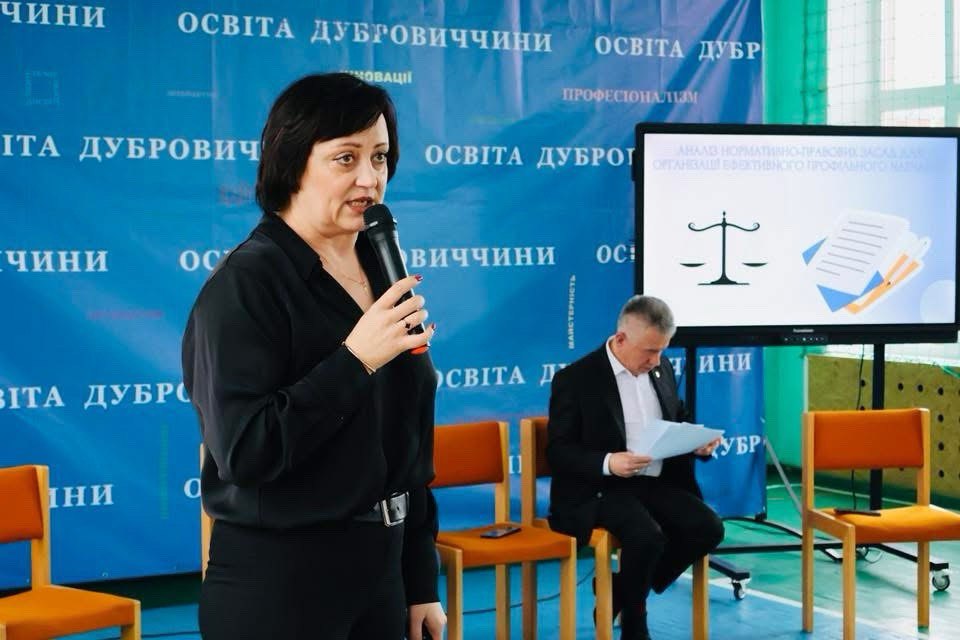Із вступним словом до присутніх звернулася Ніна Стасюк, начальник відділу освіти, культури, туризму, молоді та спорту Дубровицької міської ради. Вона підкреслила, що реформа профільної освіти має на меті не лише зміну структури шкільної освіти, а й створення сучасного освітнього середовища, яке відповідатиме потребам учнів та викликам сьогодення.