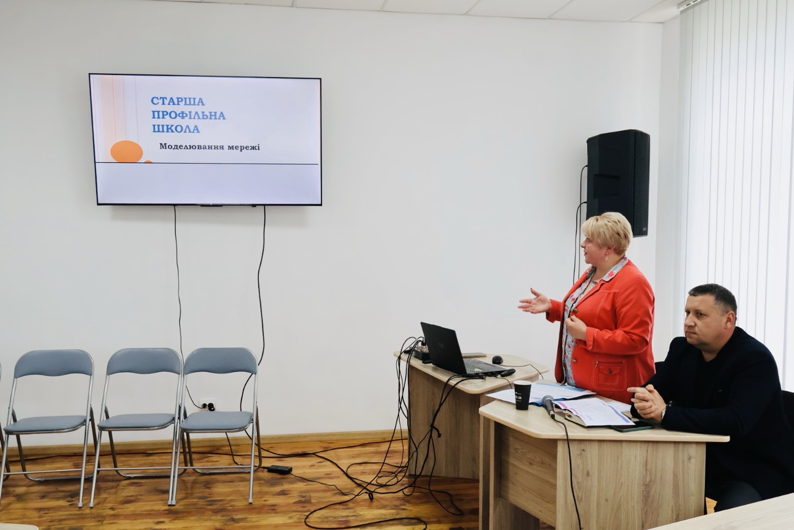 у якій взяли участь керівники закладів до яких було приєднано вже реорганізовані школи громади: Олена Полюхович, директорка Сварицевицького ліцею, Олександр Подик, директор Трипутнянської гімназії.