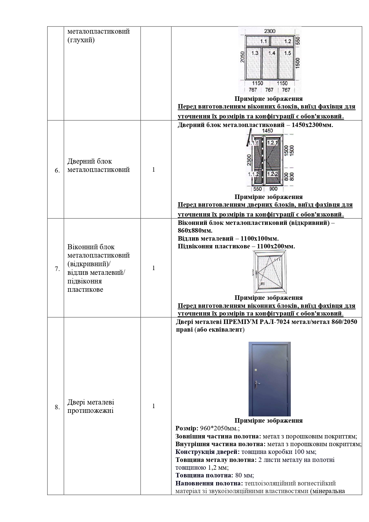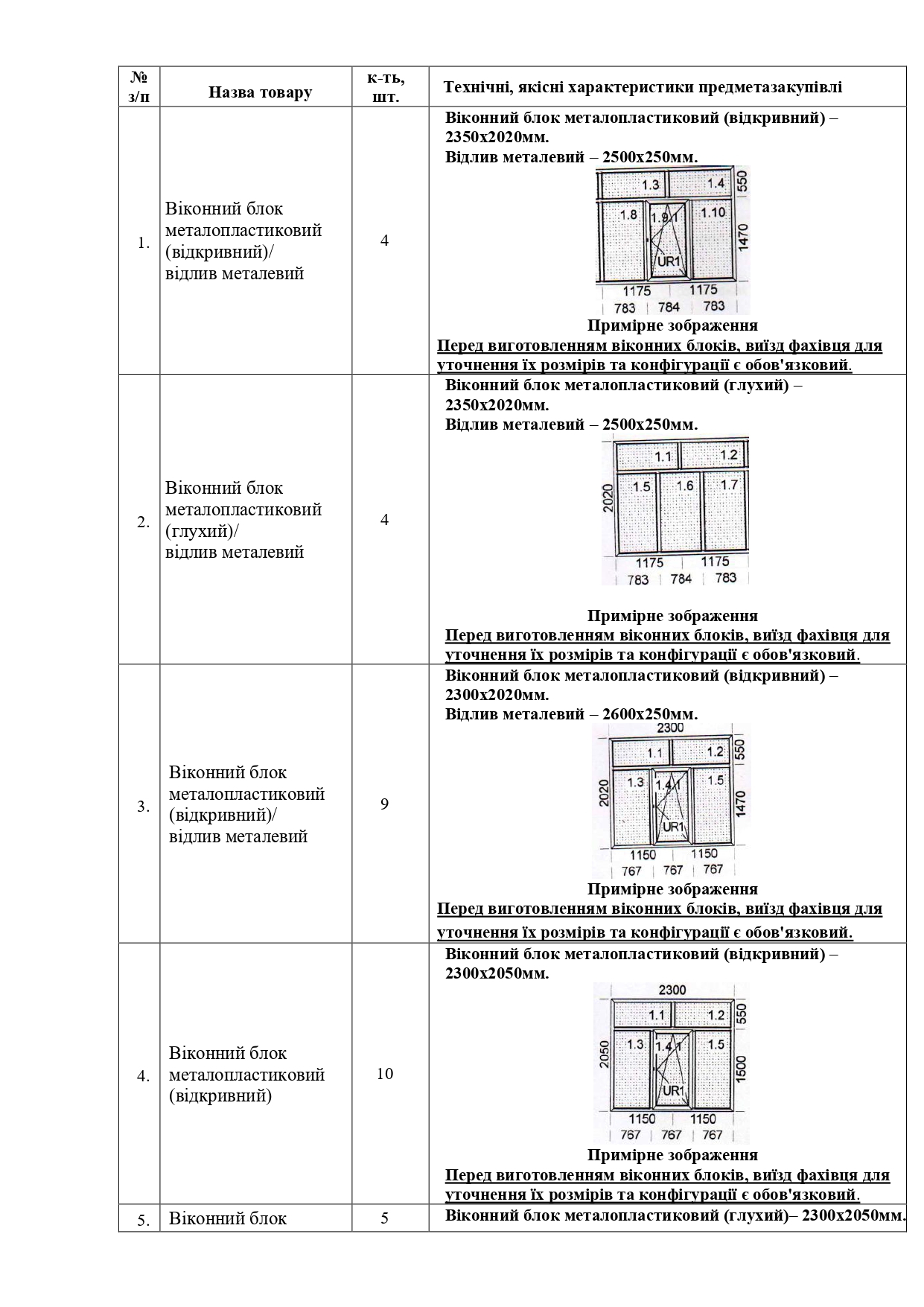 - Переможець закупівлі, перед виготовленням металопластикових вікон, повинен відправити свого фахівця для уточнення розмірів та інших вимог замовлення.