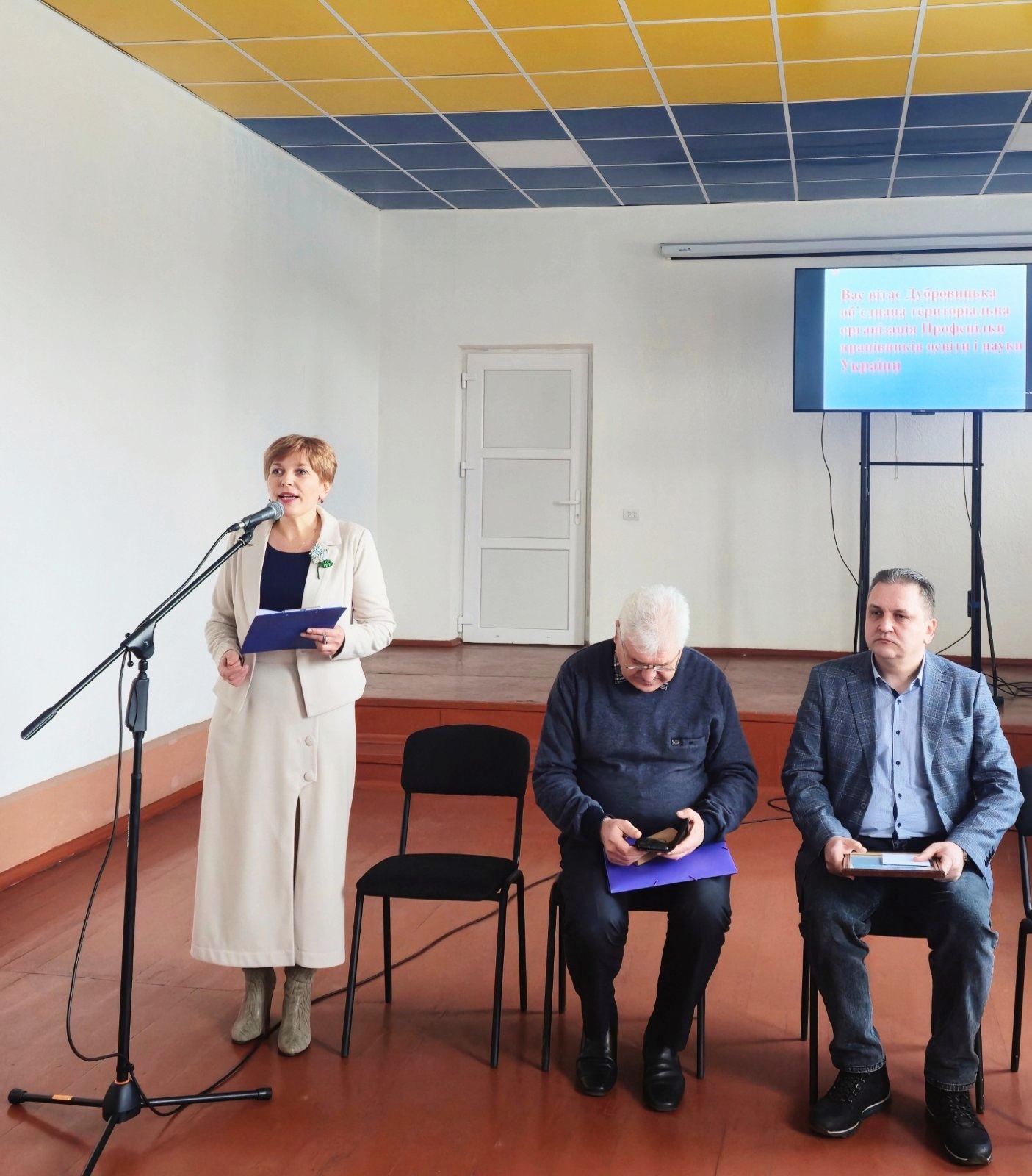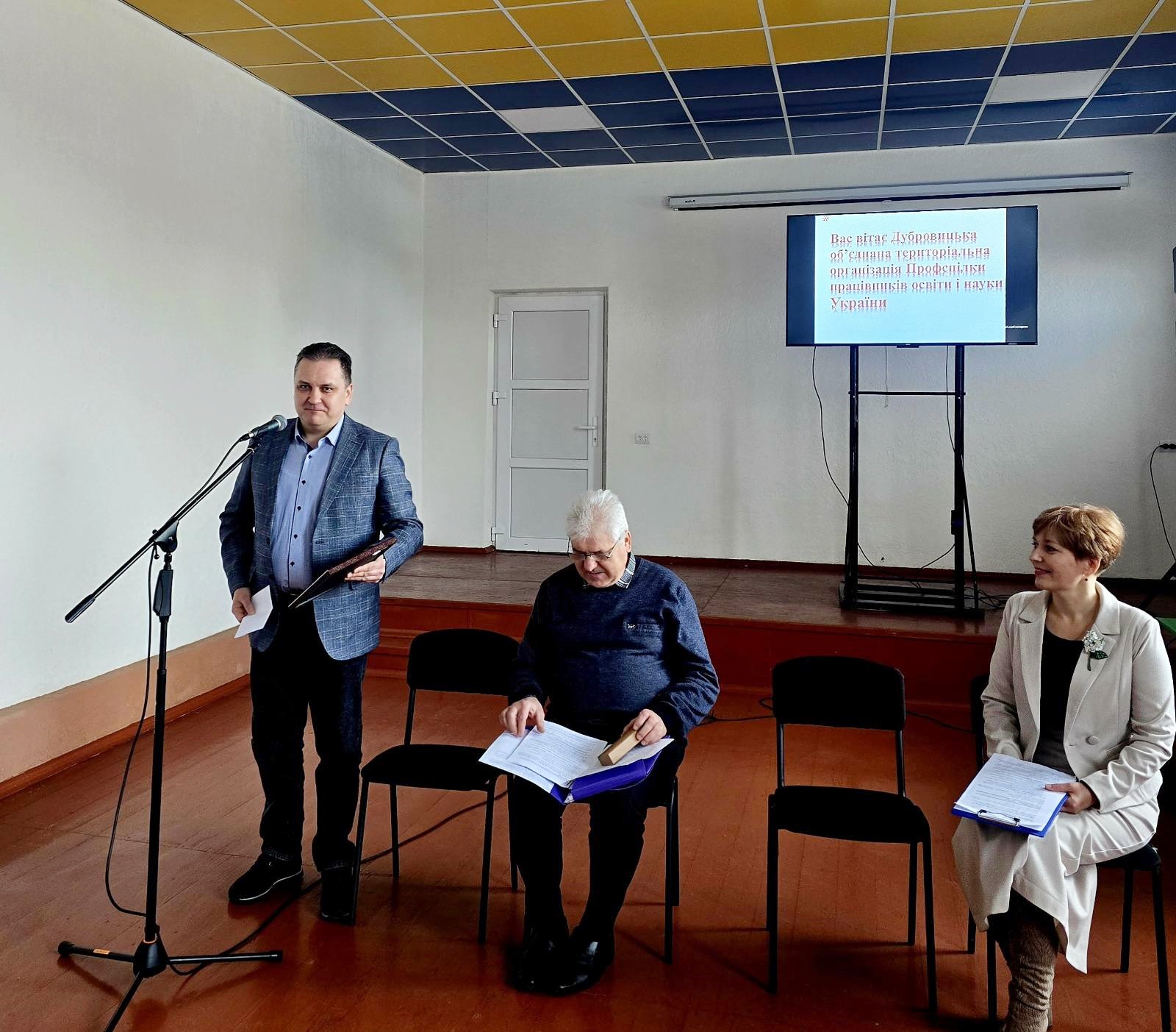 начальник відділу освіти, культури, туризму, молоді та спорту Дубровицької міської ради – Ніна СТАСЮК, заступник міського голови Дубровицької міської ради – Микола КУХАРЕЦЬ, голова Дубровицької ОТО Профспілки працівників освіти і науки України – Ольга ДУЛІНЕЦЬ, новообраний голова ради Рівненської обласної організації Профспілки працівників освіти і науки України Андрій ШИДЛОВСЬКИЙ, юрисконсульт – правовий інспектор праці Георгій АНТИПЧУК.