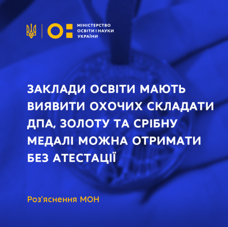 ЗАКЛАДИ ОСВІТИ МАЮТЬ ВИЯВИТИ ОХОЧИХ СКЛАДАТИ ДПА, ЗОЛОТУ ТА СРІБНУ МЕДАЛІ МОЖНА ОТРИМАТИ БЕЗ АТЕСТАЦІЇ – РОЗ’ЯСНЕННЯ МОН